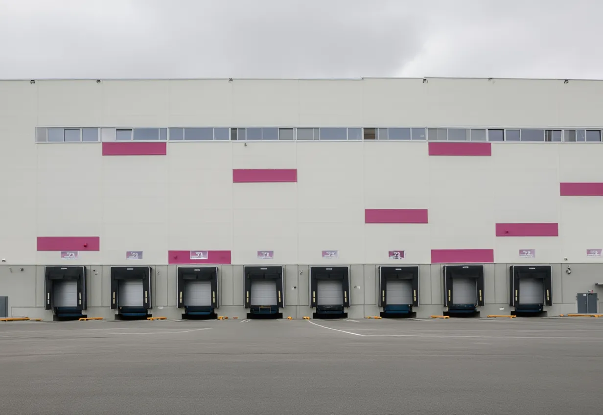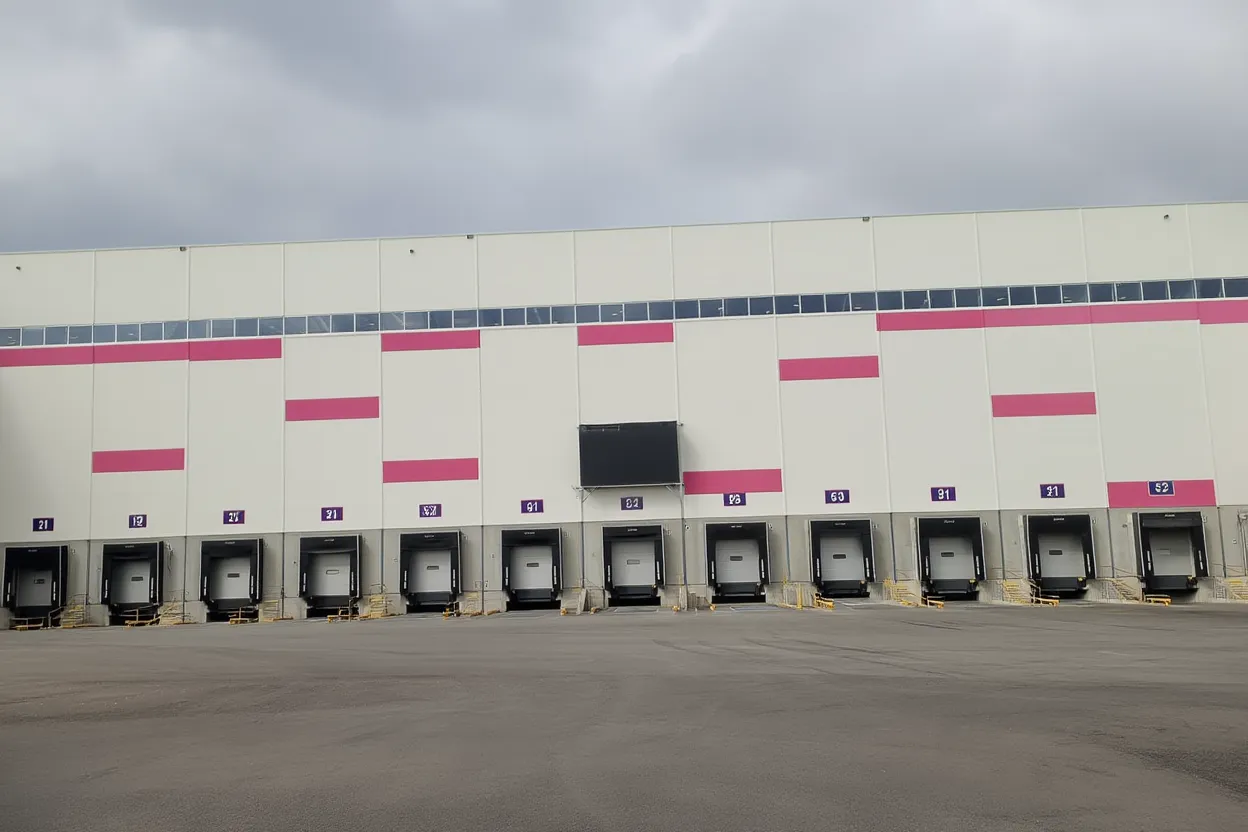 Погрузочные доки с регулируемыми эстакадами для загрузки в фуры и курьерские машины. Оптимизирована для одновременной обработки десятков транспортных средств и синхронизации с графиком доставок.